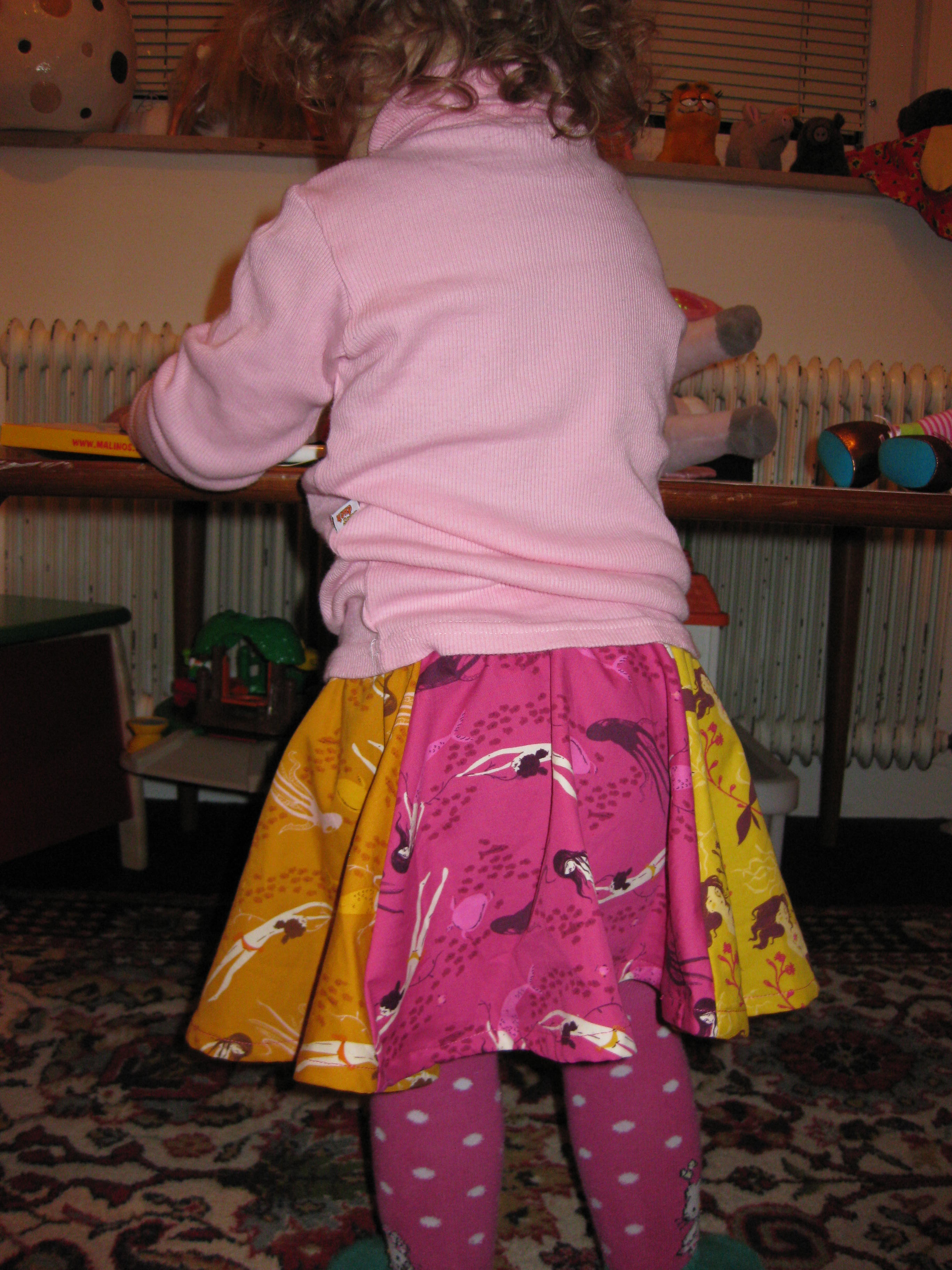 I do not have much from those fabrics left, but I could make one more skirt from them, like the patchwork style I made for my 2 years old on the pictures, in all children sizes. If you are interest write me a message on Dawanda or Etsy, and I will be happy to sew one of those for your girl!