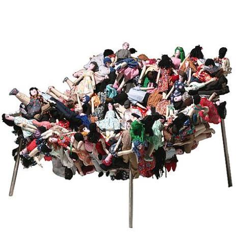 This is the most inspiring sofa I have ever seen (for a fabric lover like myself is a feast for the senses), from the designers Fernando and Humberto Campana. It´s a whole collection made of different kind of fabrics rolled together like sushi rolls, not only sofas, but also chairs, tables, stools and bowls. If you have a look at their site, go to “Sushi” on the main “map” with their work, and delight yourself with this great collection. The collection called “Favelas” are also amazing, and for the crafters: what to say about the chair “Multidão”? And speaking about waste from the last post, they also use waste products on the furniture and objects they create (not only). I remember many years ago they used PET bottles to create increadible objects. More about their work in german here and here.